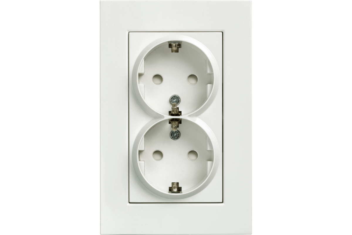 DELTA MIRO ДВОЙНАЯ РОЗЕТКА SCHUKO ТИТАНОВОБЕЛЫЙ 10/16A 250V С ВИНТ. И БЕЗВИНТ КЛЕММАМИ, С ДОП.ЗАЩИТОЙ ОТ ПРИКОСНОВЕНИЯ