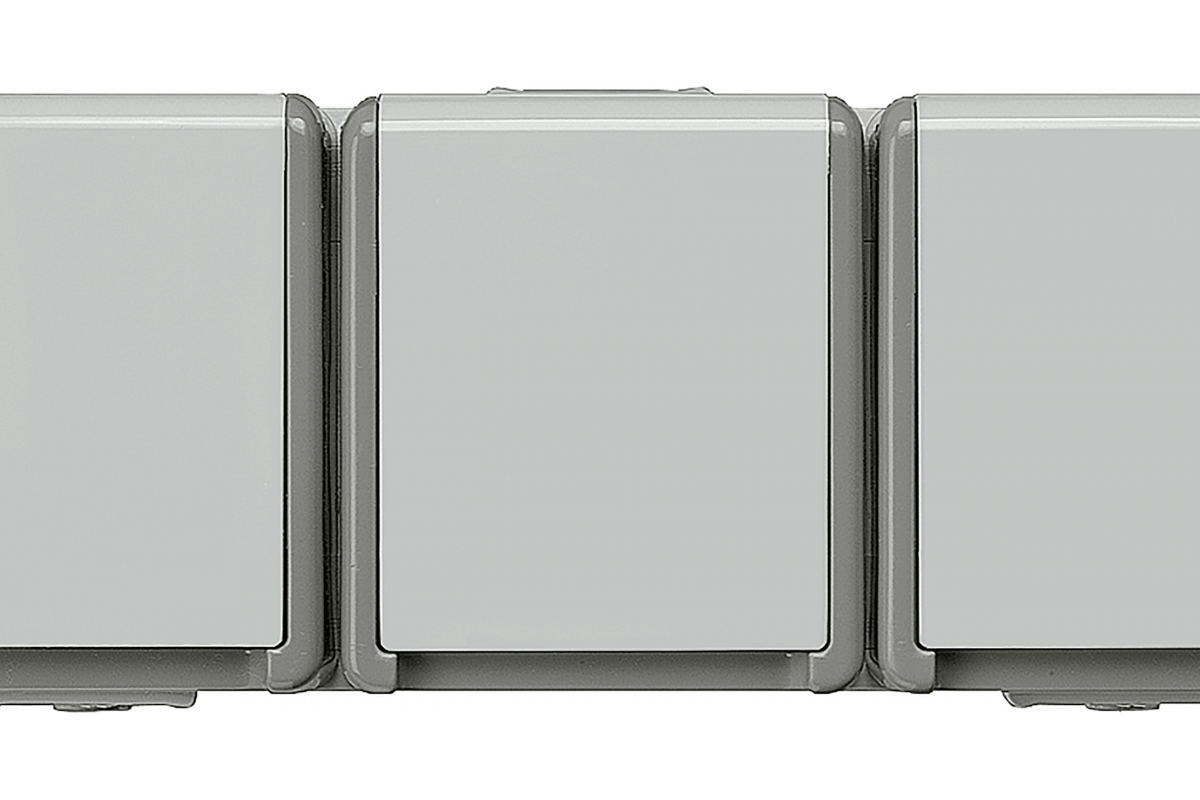 DELTA FLACHE РОЗЕТКА SCHUKO 3-МЕСТНАЯ С КРЫШКАМИ 10A DC/16А AC 250В IP44 ГОРИЗОНТАЛЬНОГО РАСПОЛОЖЕНИЯ НАВЕСНОГО МОНТАЖА БРЫЗГОЗАЩИЩЕННАЯ