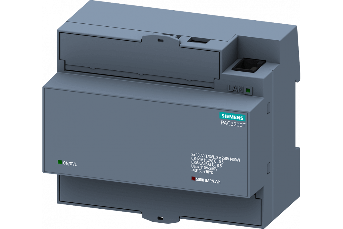 SENTRON, измерительный прибор, 7KM PAC3200T, strd mnt. железнодорожный корпус. без дисплея, L-L: 400 В, L-N: 230 В, 5 A, рельсовый проводник., 3-фазный, MODBUS TCP, кажущаяся/активная/реактивная энергия, широкодиапазонный источник питания. блок AC/DC, винтовые клеммы