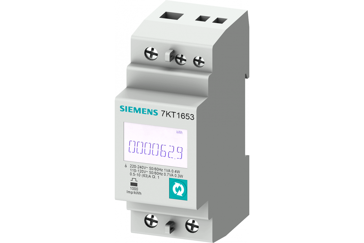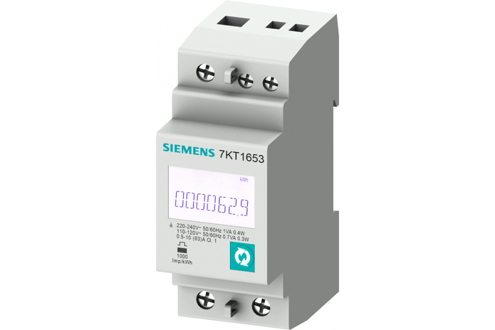SENTRON, измерительный инструмент, 7KT PAC1600, LCD, L-N: 230 V, 63 A, DIN-рейка, 1-фаз., Modbus RTU/ASCII, прямая / активная / реактивная
