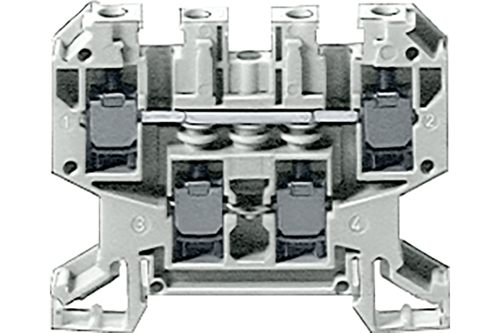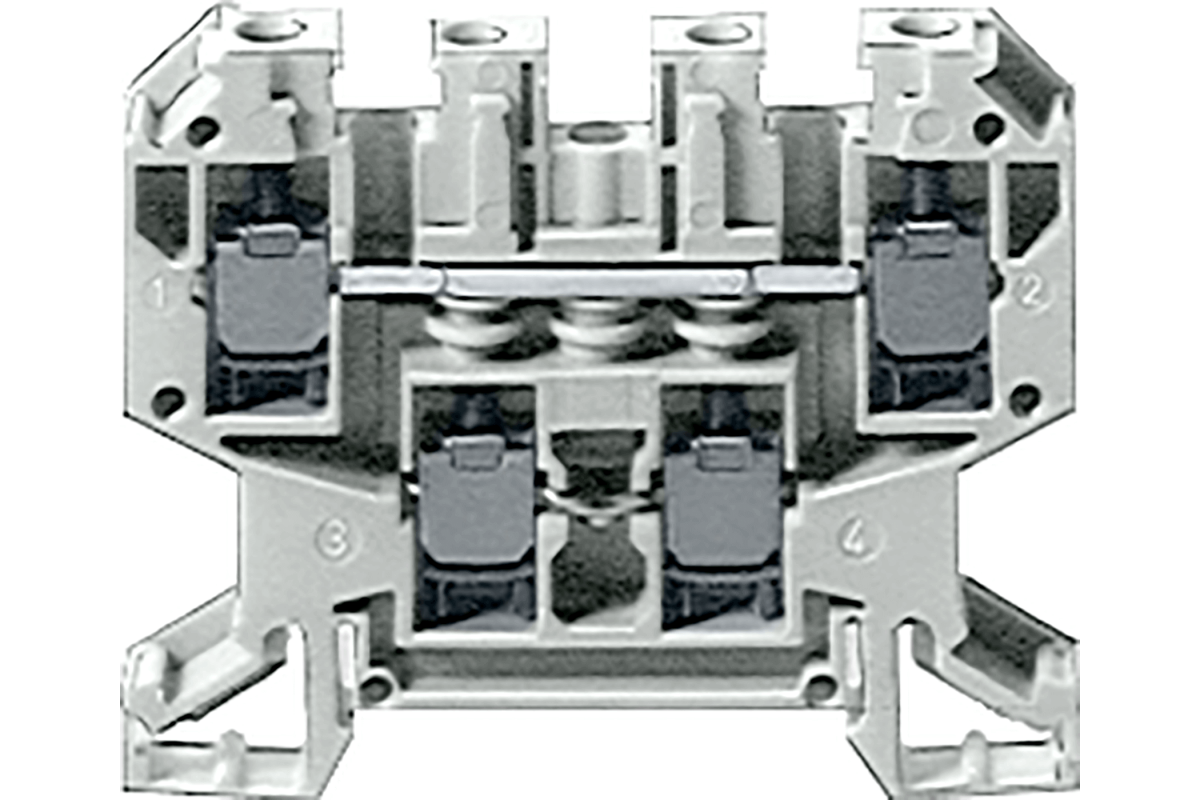 двухъярусная клемма с винтовыми клеммами размер клемм 4,0 мм² ширина клеммы 6,2 мм цвет: серый с соединением потенциалов