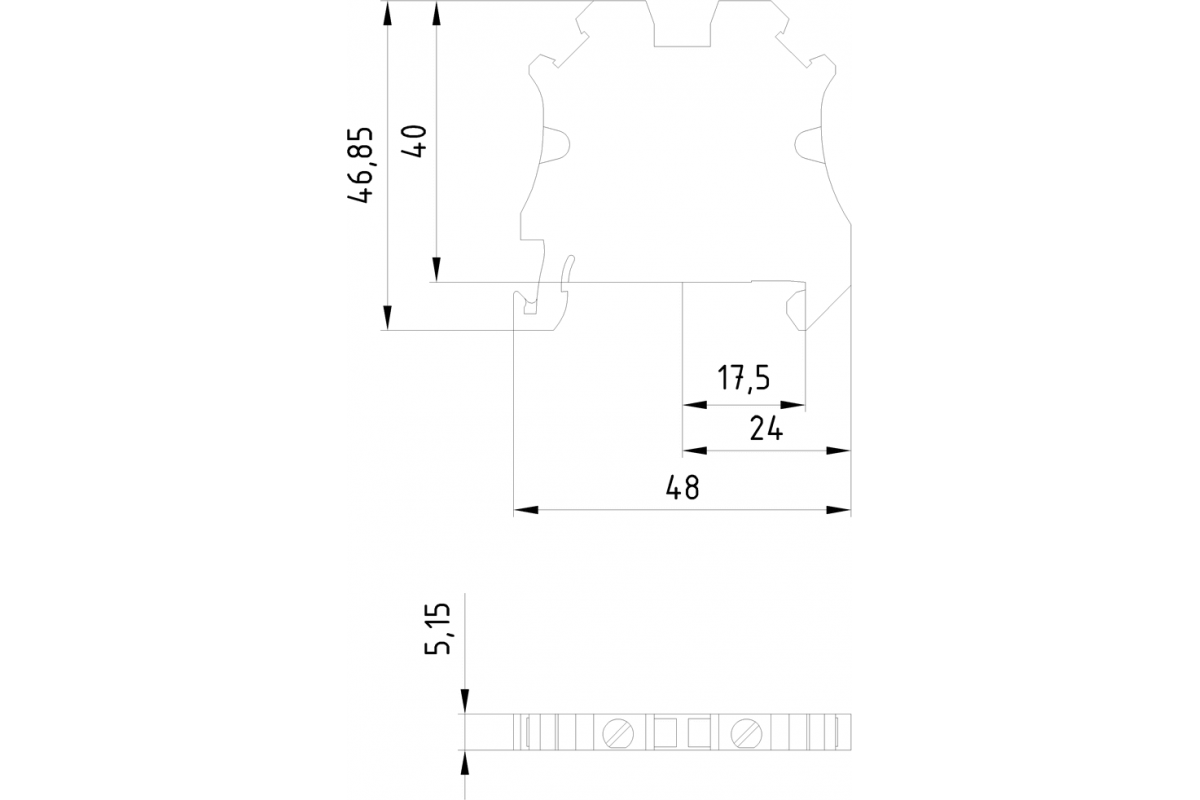 проходная клеммная колодка с винтовыми клеммами размер клемм 2,5 мм² ширина клемм 5,2 мм цвет: синий