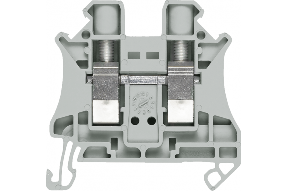 проходная клеммная колодка с винтовыми клеммами размер клемм 6,0 мм² ширина клемм 8,2 мм цвет: серый