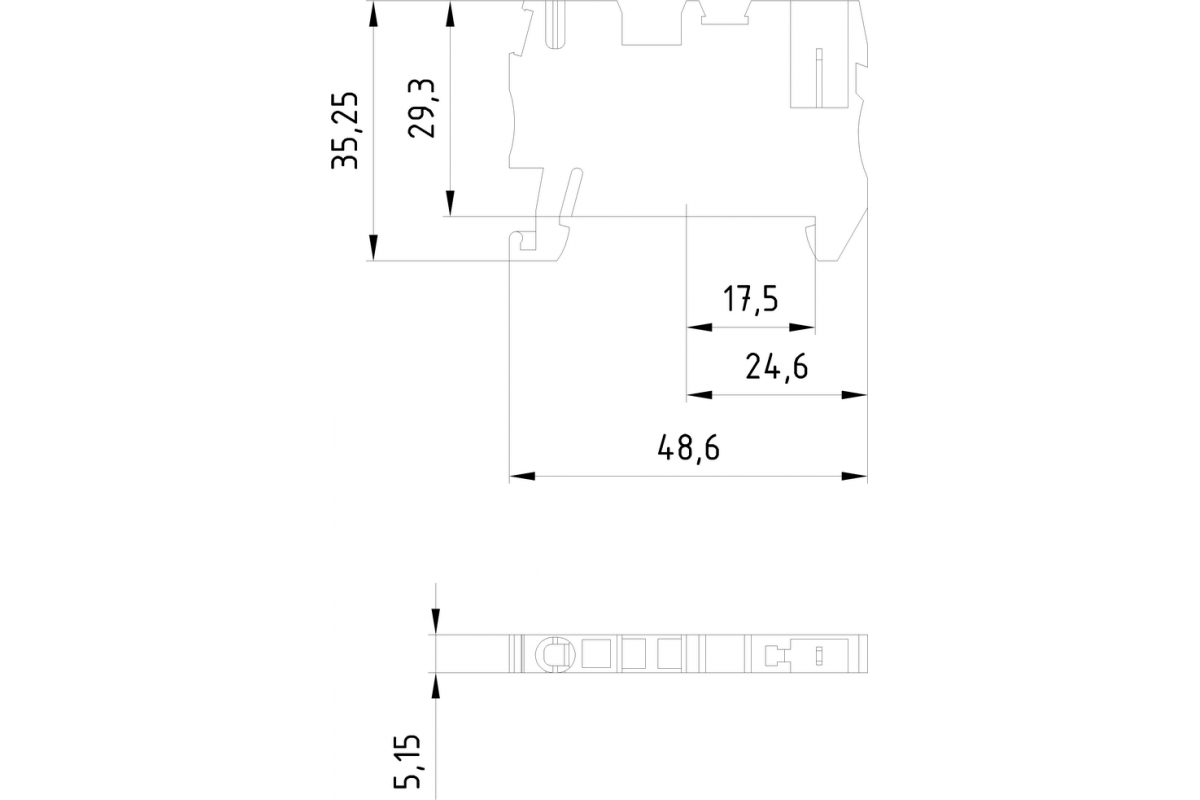 гибридная проходная клеммная колодка, втычные и пружинные клеммы, сечение 0,08-2,5 мм², ширина 5,2 мм цвет: серый