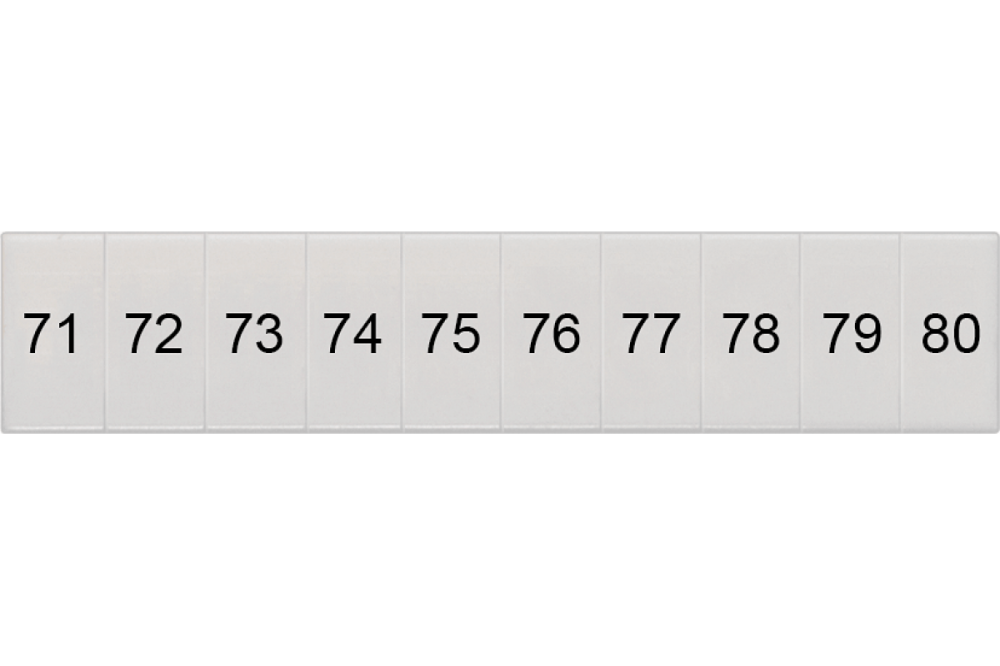 этикетка, передняя панель, 71-80, ширина клемм 5.2 мм, защелкивающееся крепление, размер белой клеммы 2.5 мм2