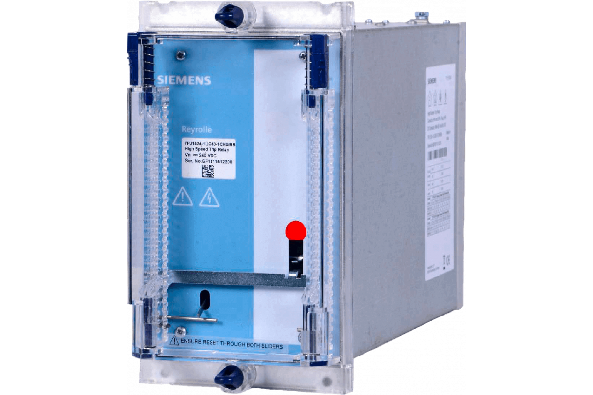 10-контактное высокоскоростное реле отключения Контакты с независимым сбросом, режим энергосбережения, 8 нормально замкнутых контактов, 2 нормально разомкнутых контакта Механический элемент индикации с ручным сбросом Корпус E2 (4 HU) Номинальное напряжение: 125 В постоянного тока