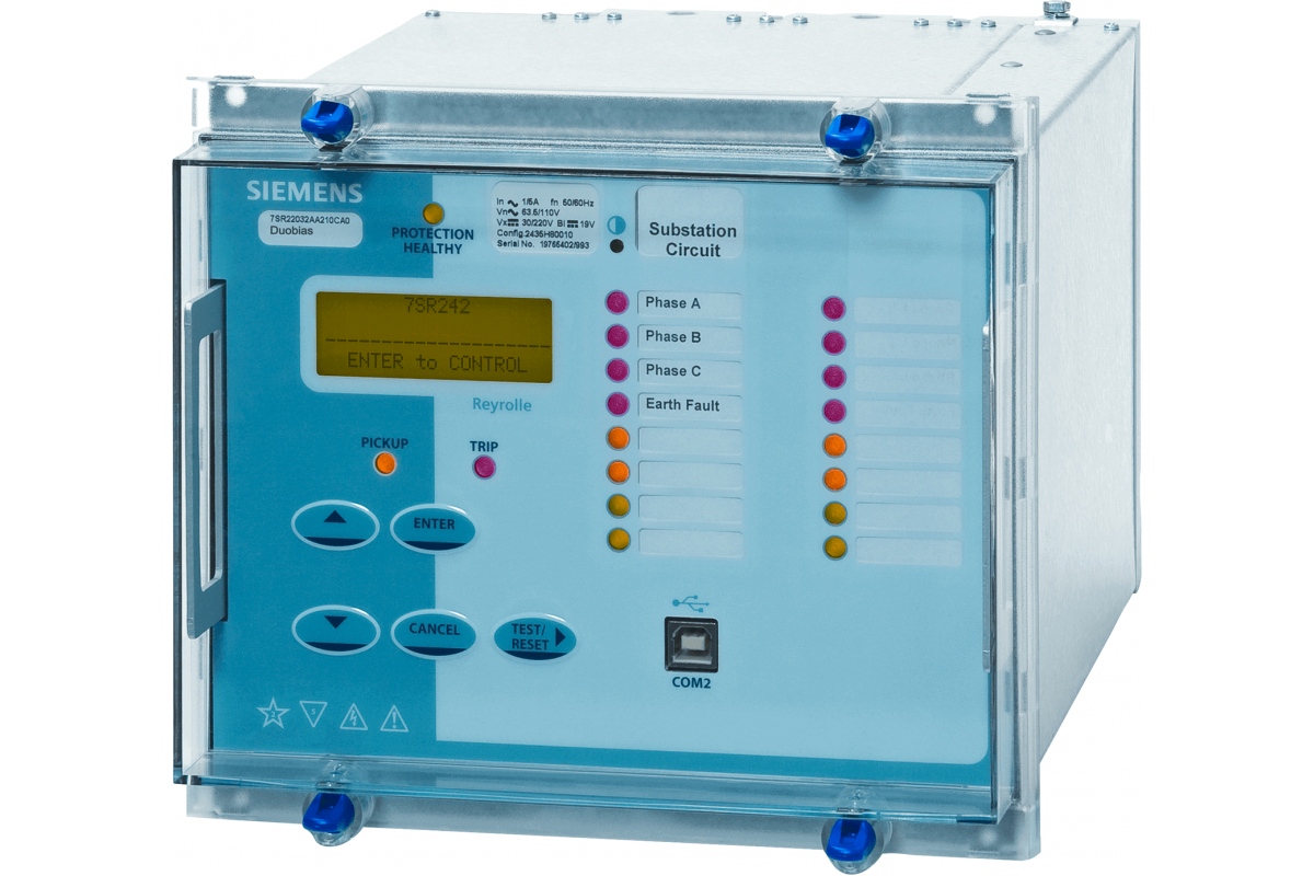 DUOBIAS-M ТРАНСФОРМАТОРНОЕ ДИФФЕРЕНЦИАЛЬНОЕ РЕЛЕ (2 ОБМОТКИ) E8 КОРПУС, 6CT, 2EF/REF CT, 1VT, 9 ДВОИЧНЫХ ВХОДОВ/ 6 ДВОИЧНЫХ ВЫХОДОВ. 16 СВЕТОДИОДОВ ИЗМЕРИТЕЛЬНЫЙ ВХОД: 1/5 A 63.5/ 110В, 50/60ГЦ РЕГИОН МИР, ЯЗЫК: АНГЛИЙСКИЙ ПЕРЕДНИЙ ПОРТ USB, ЗАДНИЙ ПОРТ RS485 IEC 60870-5-103, MODBUS RTU И DNP 3.0 (ВЫБОР ПОЛЬЗОВАТЕЛЯАБ. НАСТРОЙКА) ФУНКЦИЯ ЗАЩИТЫ: СТАНДАРТНАЯ ВЕРСИЯ + НЕДОСТАТОЧНЫЙ ТОК (37) ОТРИЦАТЕЛЬНАЯ ПОСЛЕДОВАТЕЛЬНОСТЬ ФАЗ О/С ТЕПЛОВАЯ ПЕРЕГРУЗКА (49) МГНОВЕННОЕ ЗАМЫКАНИЕ ФАЗЫ О/С МГНОВЕННОЕ ЗАМЫКАНИЕ НА ЗЕМЛЮ С ВРЕМЕННОЙ ЗАДЕРЖКОЙ ЗАМЫКАНИЕ ФАЗЫ О/С