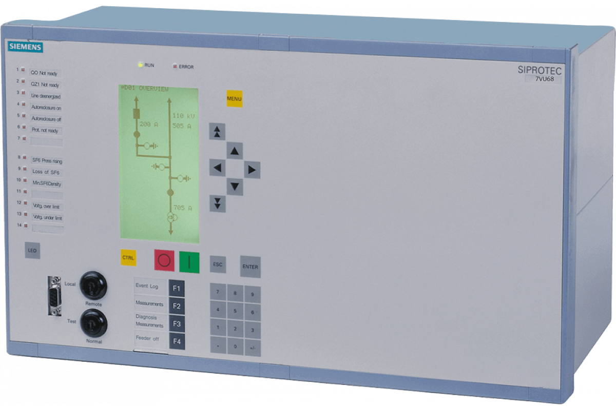 SIPROTEC 7VU68 - 8xI 8xU, одинарная система сборных шин с 2 или 3 выключателями
