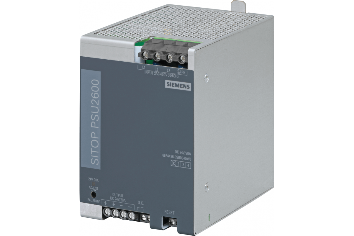 SITOP PSU2600 24 V/20 A, стабилизированный блок питания. Вход: 3х-фазный ~ 400-500 В Выход: =24 В/20 A