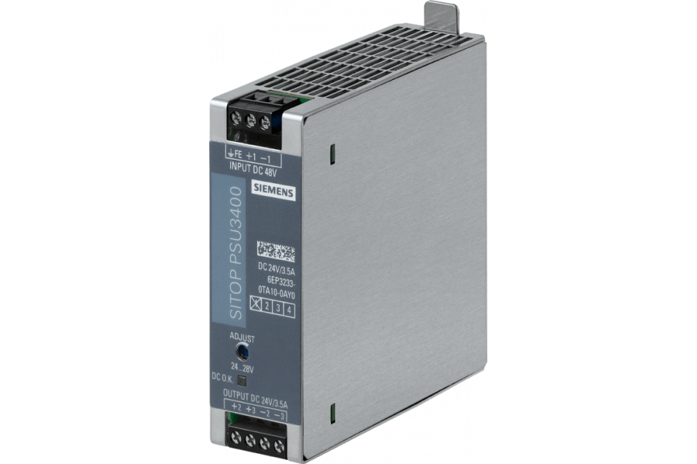 SITOP PSU3400 24 V/3.5 A Стабилизированный источник питания Вход: 48 В постоянного тока (28...60 В) Выход: 24 В ПОСТ. ТОКА/3.5 A NEC CLASS2