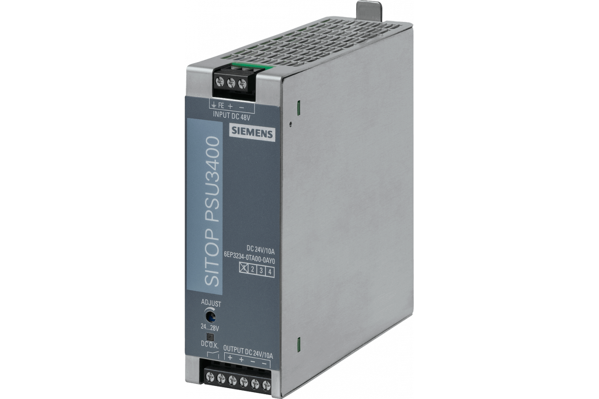 SITOP PSU3400 24 В/10 A Стабилизированный источник питания Вход: 48 В постоянного тока (28...60 В) Выход: 24 В ПОСТОЯННОГО ТОКА/10 A