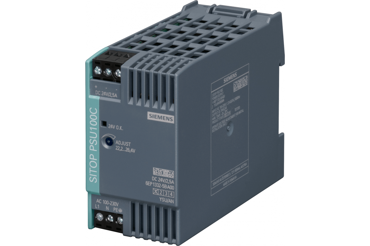 sitop psu100c 24 v/2.5 a стабилизированный блок питания, вход: ~120-230 в, выход: =24 в/2.5 aБлоки питания SITOP; Коммуникационные процессоры для S7-200/-1200 6EP1332-5BA00