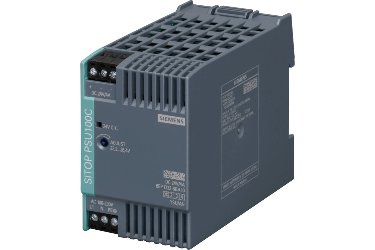 sitop psu100c 24 v/4 a стабилизированный блок питания, вход: ~120-230 в, выход: =24 в/4 aБлоки питания SITOP; Коммуникационные процессоры для S7-200/-1200 6EP1332-5BA10