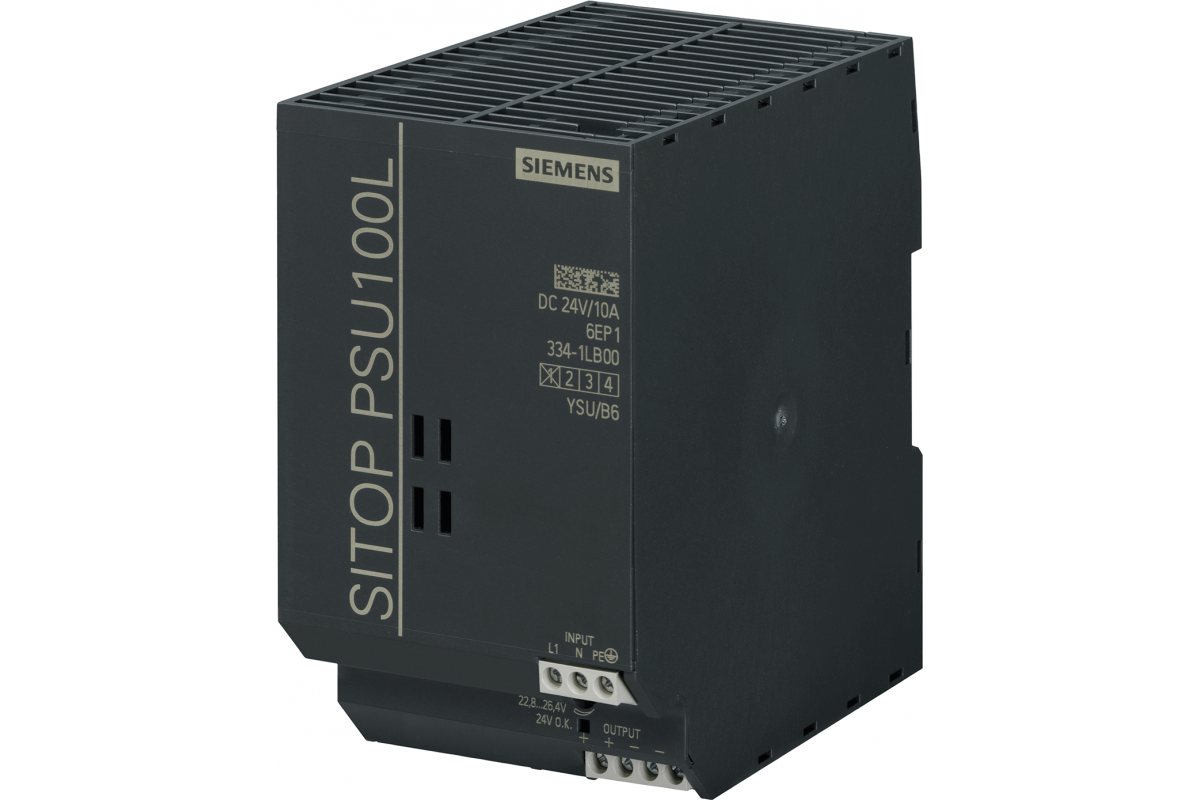 Sitop psu100l 24 v/10 a, стабилизированный блок питания, вход: ~120/230 в, выход: =24 в/10 aБлоки питания SITOP; Коммуникационные процессоры для S7-200/-1200 6EP1334-1LB00