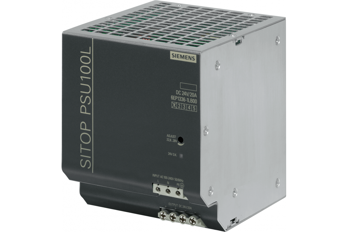 6EP1336-1LB00 SITOP PSU100L 24 V/20 A, стабилизированный блок питания. Вход: ~100-240 В, выход: =24 В/20 A