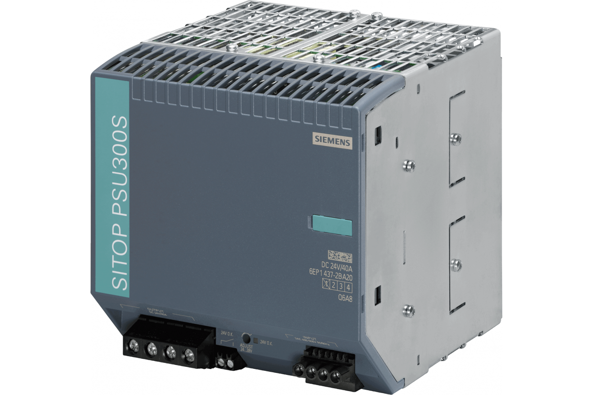 Блок питания PSU300S SITOP Smart с входным напряжением 340...550 В АС трехфазного переменного тока, выходным напряжением =24В DC и током нагрузки 40А отличаются высокой перегрузочной способностью (до 150% от выходного номинального тока) и обеспечивают эффективную защиту нагрузки от коротких замыканий, перенапряжений, перегрузок. Блоки сохраняют работоспособность в диапазоне температур от -10 до +70°C. Модификации с выходным напряжением =24 В позволяют использовать модули расширения.