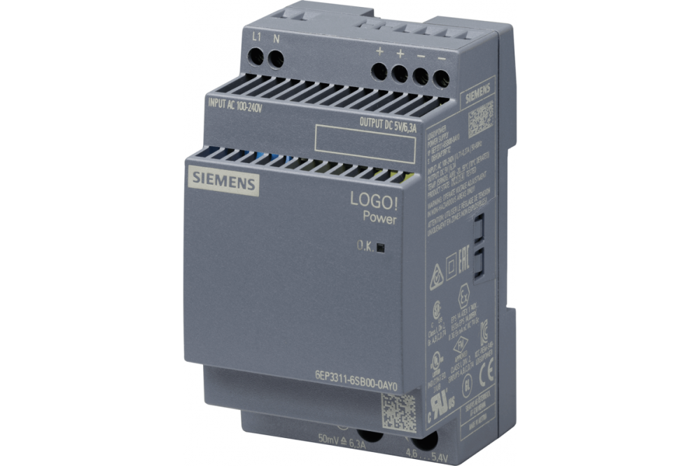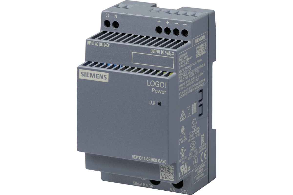 LOGO!power 5 v / 6.3 a, стабилизированный блок питания, вход: ~100-240 в, выход: =5 В / 6.3 aЛогические модули LOGO!, SIPLUS LOGO!, LOGO! Power, SITOP PSA 6EP3311-6SB00-0AY0