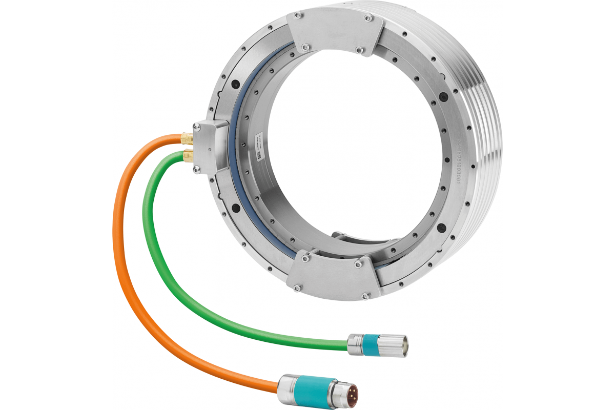 SIMOTICS T внешняя рубашка охлаждения статора; осевой кабельный вывод силового кабеля 0.5 м со штекером размера 1.5; сигнальная линия 0.5 м со штекером M17; диаметр 385 мм; длина 210 мм; макс. крутящий момент 2130 Нм; макс. скорость 189 об/мин; макс. ток 106 А среднеквадратичное значение; С PTC130 и датчиком температуры Pt1000