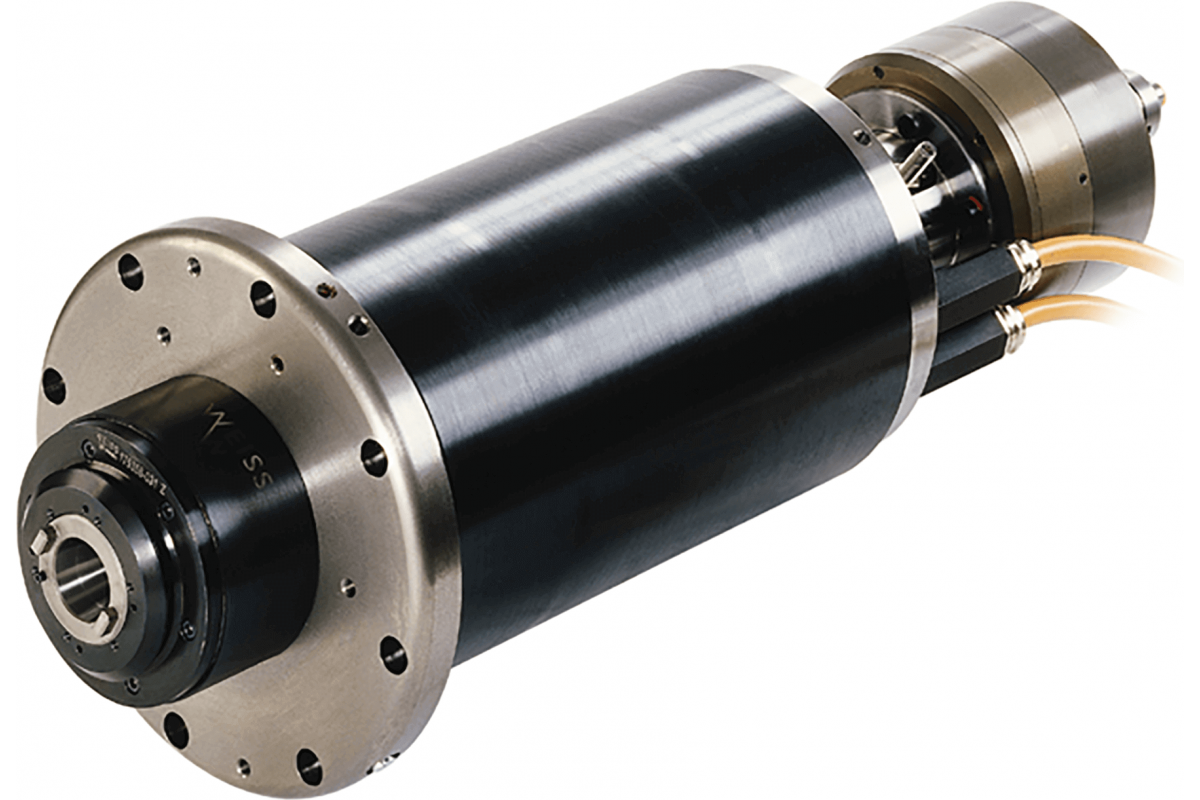 Мотор-шпиндель ECS синхронный 35.0 кВт, 78 Нм, 4300 об/мин Nmax 18000 об/мин, S6-40% 110 Нм Картриджное исполнение Диаметр шпинделя 200 мм Подшипник с постоянной консистентной смазкой Соединение для воздуха для уплотнения подшипника Интерфейс для инструмента