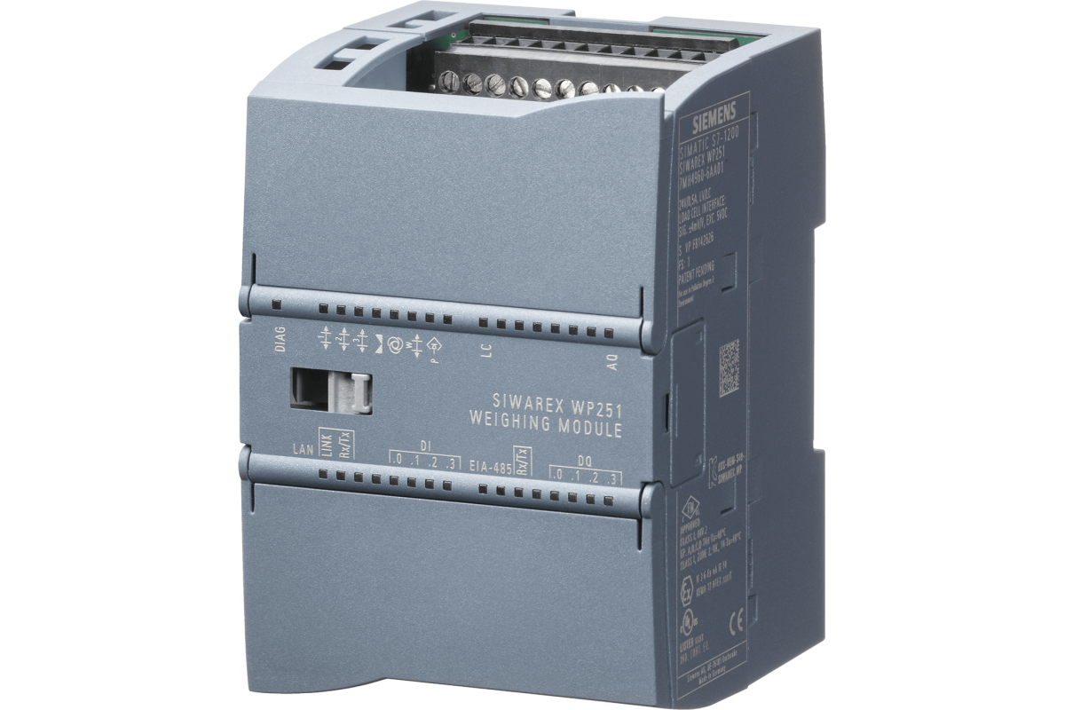 Весовой модуль SIWAREX WP251 для использования с тензометрическими датчиками веса (1-4 mV/V), 1 канал, для встраивания в SIMATIC S7-1200 или независимо, интерфейс RS485 и Ethernet, вх/выходы I/O: 4 DI / 4 DO, 1 AO (0/4…20mA), внимание: поверка и калибровка в соответствии с местным законодательством