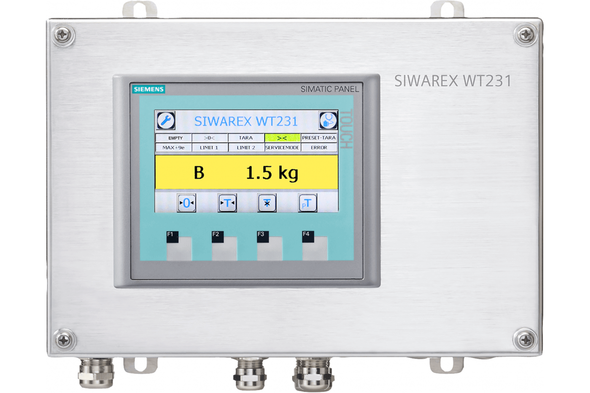 Весовой терминал SIWAREX WT231 для статического взвешивания, - Корпус из нерж.стали, включает: SIWAREX WP231, - SIMATIC KTP400 Basic Color PN - Блок питания 100-240 VAC - IP65, Температурный диапазон 0-40 град.Цельсия (без поверки и метрологического сертификата)
