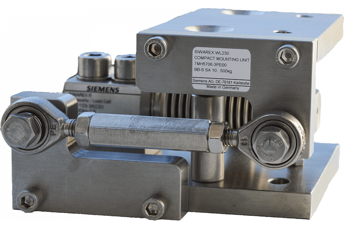 компактный сборочный узел для весовых ячеек SIWAREX WL230 BB-S SA 350…500 кг готовый к установке и предв. установленный монтажный блок с фиксированной верхней пластиной, вкл. защиту от отрыва вкл. защиту от перегрузки вкл. защиту от качания вкл. заземляющую ленту подготовлено для установки до двух сочленений ном. нагрузка: 350…500 кг матер.: нерж. ст. 1.4301 и нерж. ст. 1.4112 без весовой ячейки!