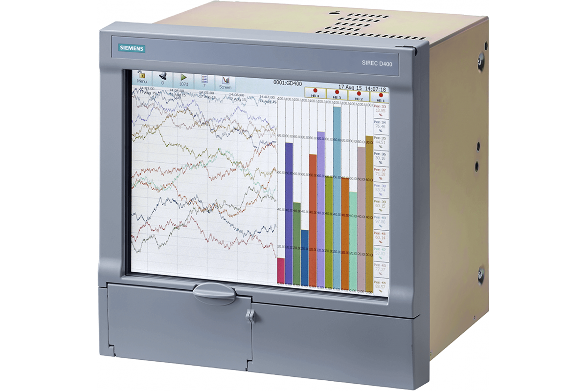 SIREC D400 - дисплей-регистратор Размеры спереди 300 x 300 мм, для всех приложений Скорость сканирования: 200 мс мА, В, мВ; Rearsite: Ethernet; RS485; USB интерфейсы Передняя сторона: Слот для CF-карты; USB-интерфейс;