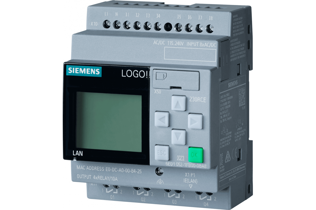 SIPLUS LOGO! 230RCE на базе 6ED1052-1FB08-0BA1 с конформным покрытием, -25...+60 °C, запуск -20 °C, логический модуль, дисплей Питание / В/О: 115 В/230 В/реле, 8 DI/4 DQ, память 400 блоков, модульно расширяемая, Ethernet, встроенный веб-сервер, журнал данных, пользовательские веб-страницы, стандартная карта microSD для LOGO! Soft Comfort V8.3 или выше старшие версии проектов исполняемые облачные соединения во всех LOGO! 8.3 базовых блока