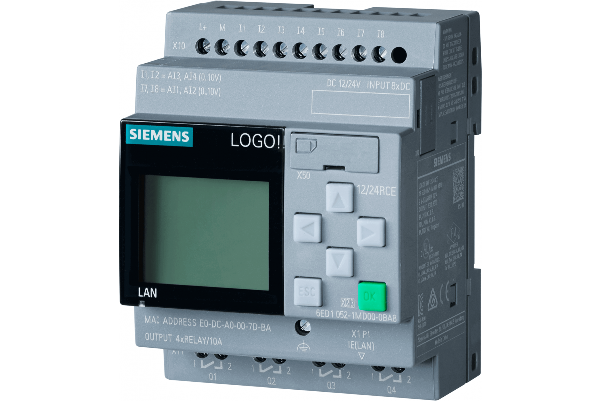 ЛОГОТИП SIPLUS! 12/24RCE на базе 6ED1052-1MD08-0BA1 с конформным покрытием, -25...+60 °C, запуск -20 °C, логический модуль, дисплей питание/вход/выход: 12/24 В DC/реле, 8 DI (4 AI)/4 DQ, память 400 блоков, модульно расширяемая, Ethernet, встроенный веб-сервер, журнал данных, пользовательские веб-страницы, стандартная карта microSD для LOGO! Soft Comfort V8.3 или выше, более старые проекты исполняемое облачное подключение во всех LOGO! 8.3 основных блока