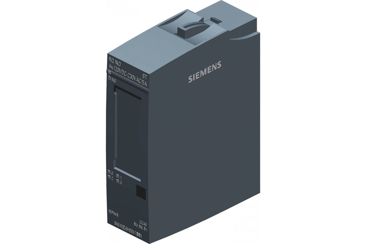 Siplus ET 200Sp, модуль дискретных релейных выходов rq no 4x 120v DC..230 ВAC/5a, рабочая температура -40 ... +70°c, со конформным покрытием, на основе 6es7132-6hd01-0bb1 . 4 нормально-открытых контакта реле, изолированные контакты, упаковка из 1 шт., для