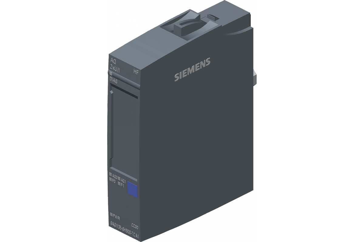 SIPLUS ET 200SP AQ 2xU/I HF на базе 6ES7135-6HB00-0CA1 с конформным покрытием, -40...+70 °C, модуль аналогового вывода, подходит для BU типа A0, A1, цветовой код CC00, диагностика канала, 16-бит, +/-0.1%