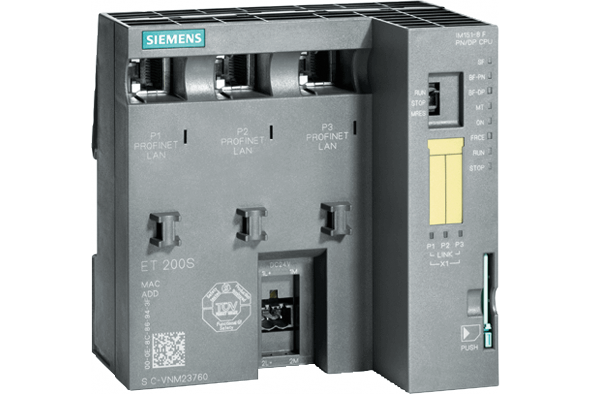 Siplus et200s, интерфейсный модуль im151-8f Pn/dp, раб. темп. -25 ... +60°c, с конформным покрытием, на основе модуля 6es7151-8fb01-0 Аb0. ЦПУ для et200s, 256 кб рабочей памяти, встроенный интерфейс PROFINET (с тремя портами RJ45), io-controller, работа без бат