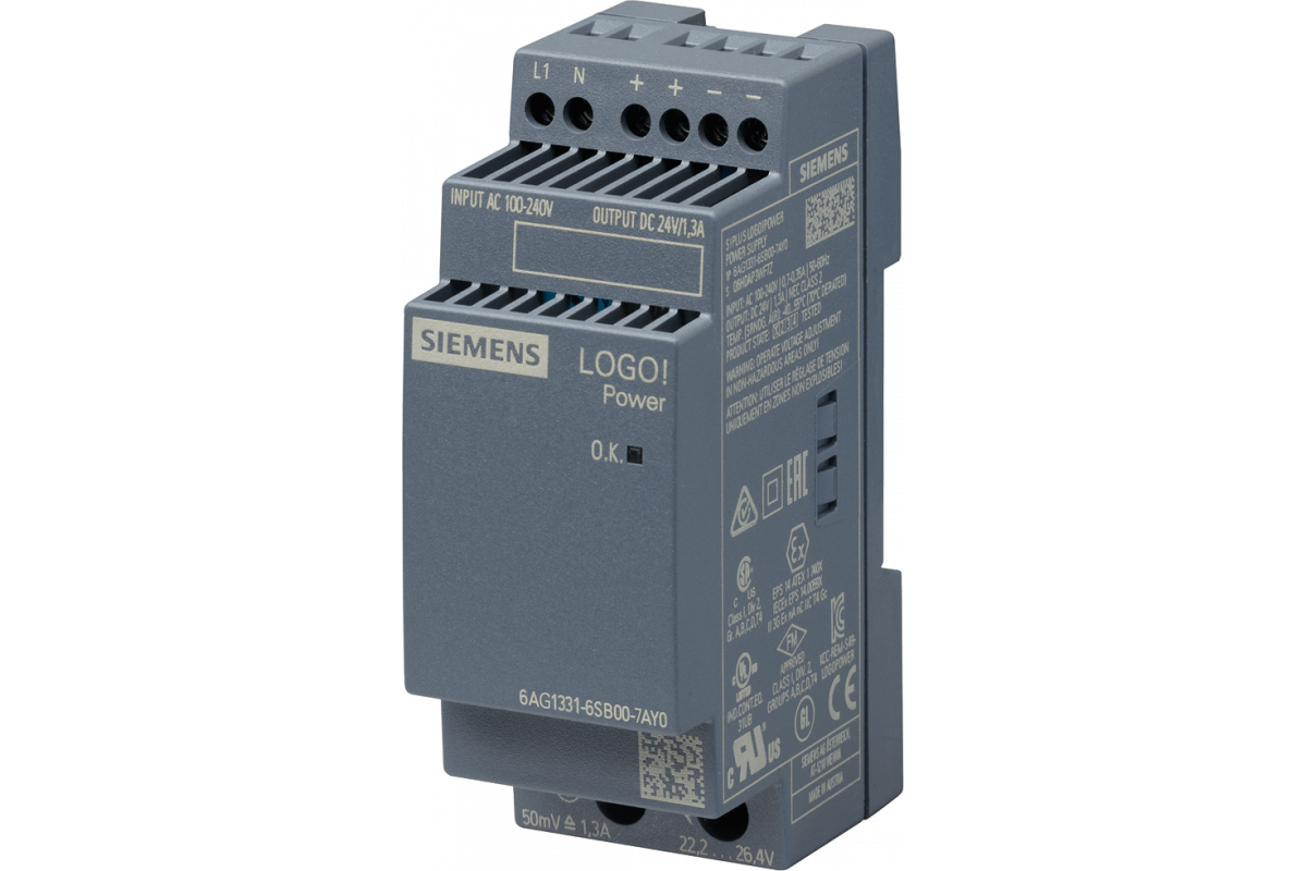 SIPLUS LOGO! питание 24 В 1.3 A на базе 6EP3331-6SB00-0AY0 с конформным покрытием, -40...+70 °C, запуск -25 °C, стабилизированное питание вход: 100-240 В переменного тока выход: 24 В ПОСТОЯННОГО ТОКА/ 1.3 A