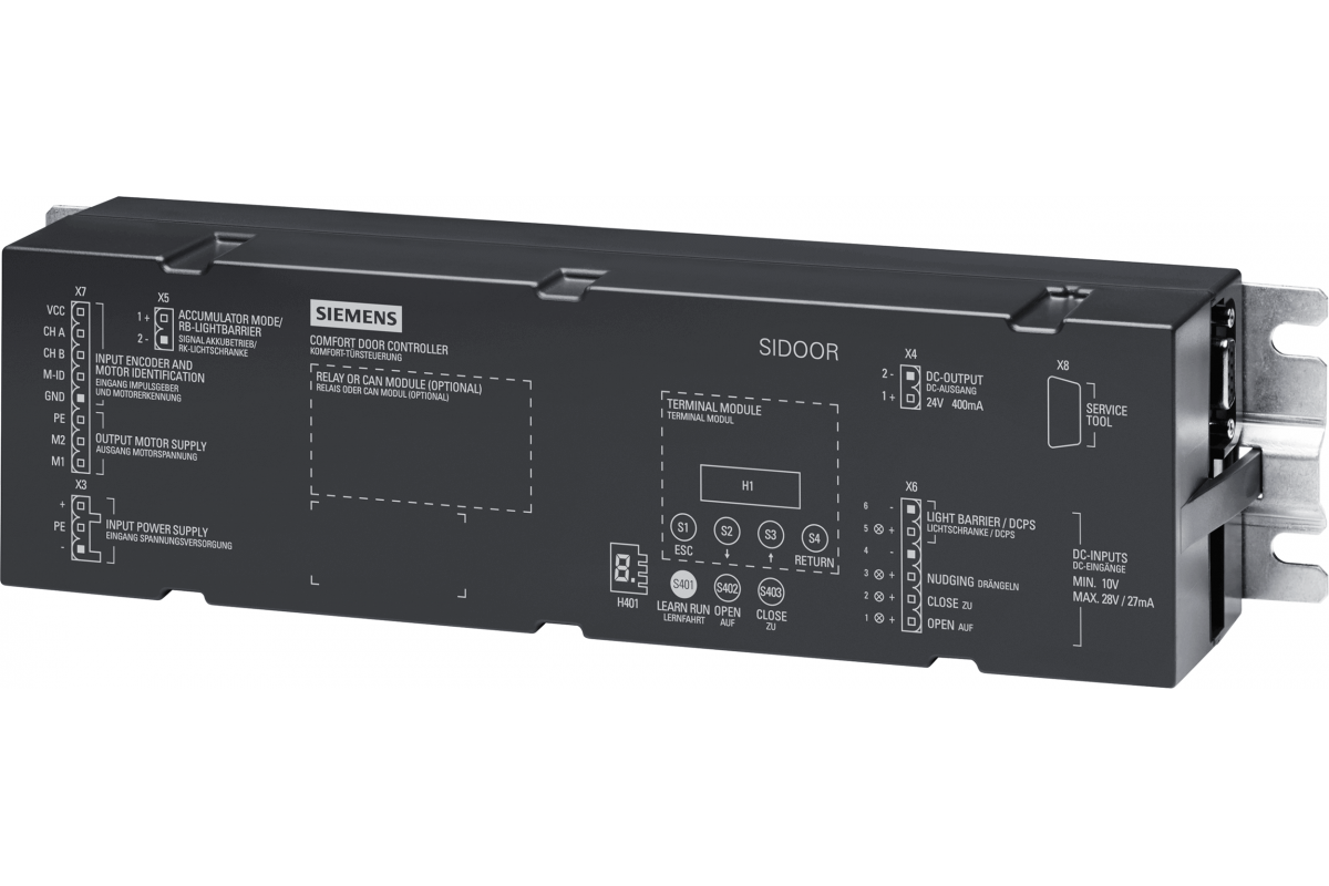 SIDOOR AT40 CAN ADV, блок управления для дверей лифта до 600 кг движущейся массы, вывод данных о техническом обслуживании через CANopen, =36 В, 1 * RS485, 1 * CAN, 4 * DI, 2 * реле, 1 * выход =24 В, от -20 до +50°C