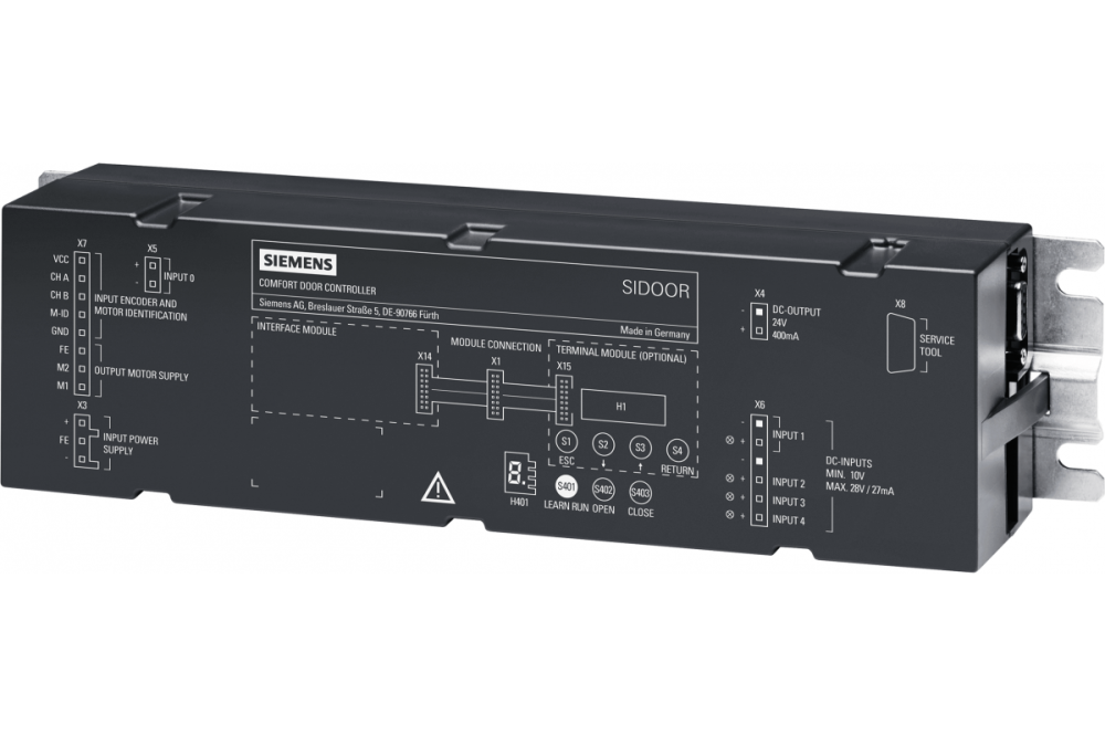 Устройство управления SIDOOR ATD430W для станков, вес двери до 700 кг, 36 В постоянного тока, 1*RS485, 4*DI, 2*реле, PROFINET IO класс соответствия C через 2x гнезда RJ45, 1*24 В постоянного тока, от -20 до +50 °C, EN ISO 13849-1 уровень эффективности d, EN ISO 14120
