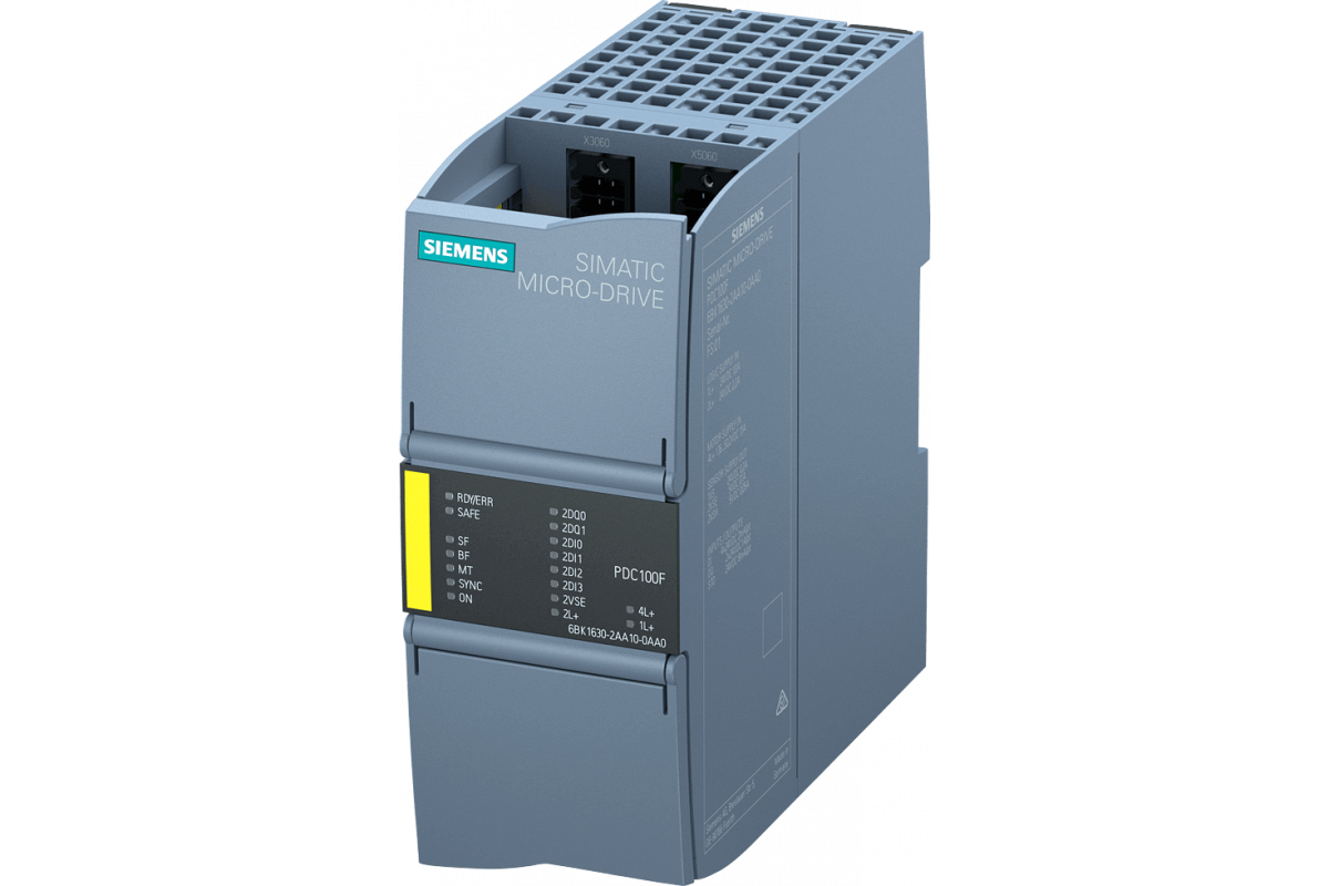 SIMATIC MICRO-DRIVE PDC100F, контроллер привода для сервоприводов в диапазоне сверхнизких напряжений, питание привода от 24 до 48 В CS механизм, мощность двигателя макс. 100 Вт, встроенная безопасность через PROFIsafe
