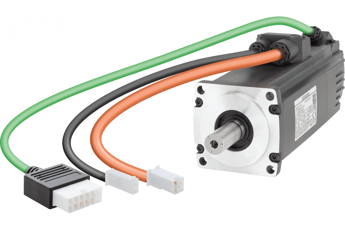 SIMOTICS S-1FL6 Рабочее напряжение 230 В 3AC Pn=0.4 кВт; Nn=3000 об/мин M0=1.27 Нм; MN=1.27 Нм Высота вала 30 мм Инкрементный энкодер TTL 2500 инкр./об/мин. с перьевой шпонкой Допуск N с фиксирующим тормозом Степень защиты IP65 с уплотнительным кольцом, совместимым с преобразователями SINAMICS V90