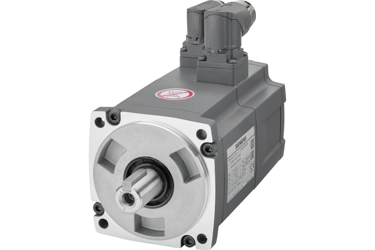 SIMOTICS S-1FL6 Рабочее напряжение 3AC 400 В Pn=0.4 кВт; Nn=3000 об/мин M0=1.9 Нм; MN=1.27 Нм Высота вала 45 мм, с угловым разъемом; инкрементный энкодер 2500 инкр./об. с перьевым ключом Допуск N без тормоза Степень защиты IP65 с уплотнительным кольцом совместим с преобразователями SINAMICS V70 & V90