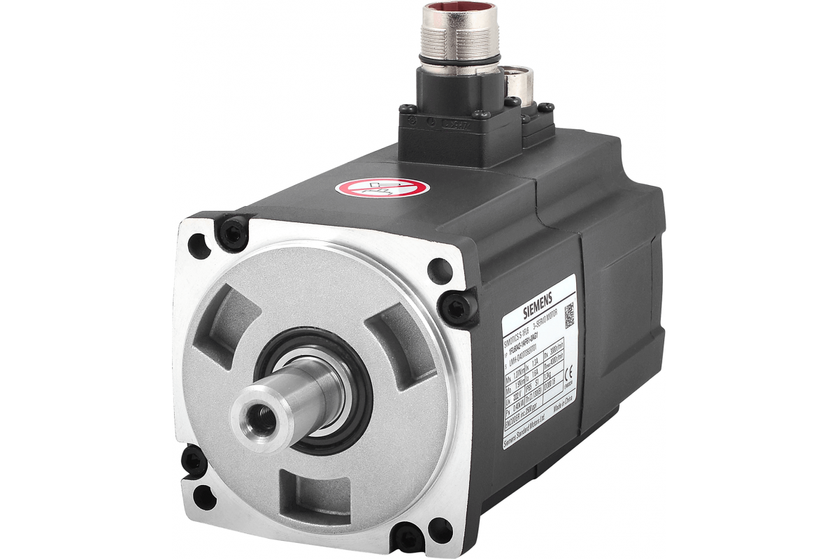 SIMOTICS S-1FL6 Рабочее напряжение 3AC 400 В Pn=0.75 кВт; Nn=3000 об/мин M0=3.5 Нм; МН=2.39 Нм Высота вала 45 мм, с угловым разъемом; абсолютный энкодер 20 бит (12-битный многооборотный) с перьевой шпонкой, допуск N с удерживающим тормозом Степень защиты IP65 с уплотнительным кольцом совместим с преобразователями SINAMICS V70 & V90