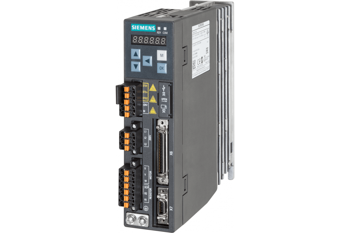 SINAMICS V90, с PROFINET Входное напряжение: 200-240 В 1/3-фазного переменного тока -15% / + 10% 3,0 / 1,8 Напряжение 45-66 Выход: 0 - Входное напряжение: 1.4 0-330 Гц Двигатель: 0,2 кВт Степень защиты: IP20 Размер A, 45x170x170 (ШхВхГ)