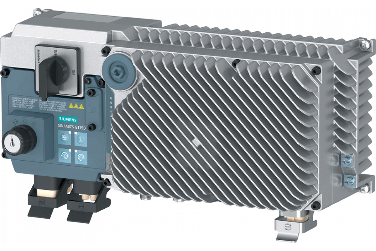 SINAMICS G115D настенный монтаж Номинальная мощность: 0,75 кВт для 3S 200%, 57S 150%, 240S 87% Фильтр подавления радиопомех для Cat, C2 3AC380-480V+10/-10% 45-66 Гц температура окружающей среды температура, от -30 до +40 °C размер: FSA Класс защиты IP65/66 / UL Type 4X напряжение торможения 180 В пост. тока ремонтный выключатель Q4/2 для 400 В переменного тока и 7/8" для 24 В постоянного тока и M12 для ввода-вывода и связи с сквозным подключением Q8/0 для подключения двигателя Встроенная полевая шина: PROFINET PN, Ethernet IP