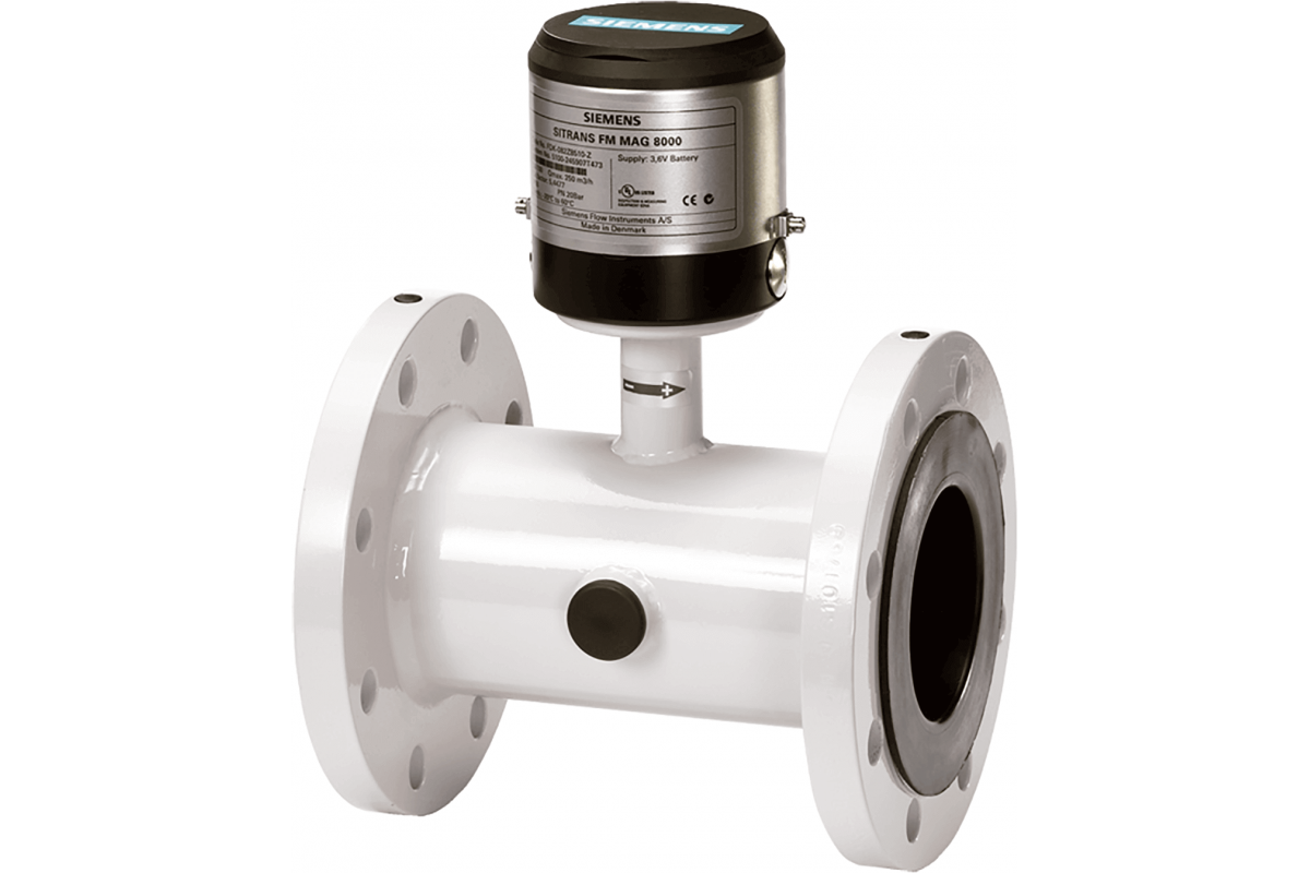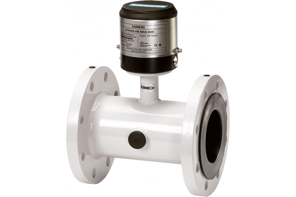 SITRANS FM MAG 8000 Электромагнитный расходомер с питанием от батареи, фланцевый, диаметр DN 25 - DN 1200 (1 - 48). Подходит для измерения объемного расхода жидкостей (проводящих) и воды в системах водозабора, распределительных сетей, учета доходов и ирригации.