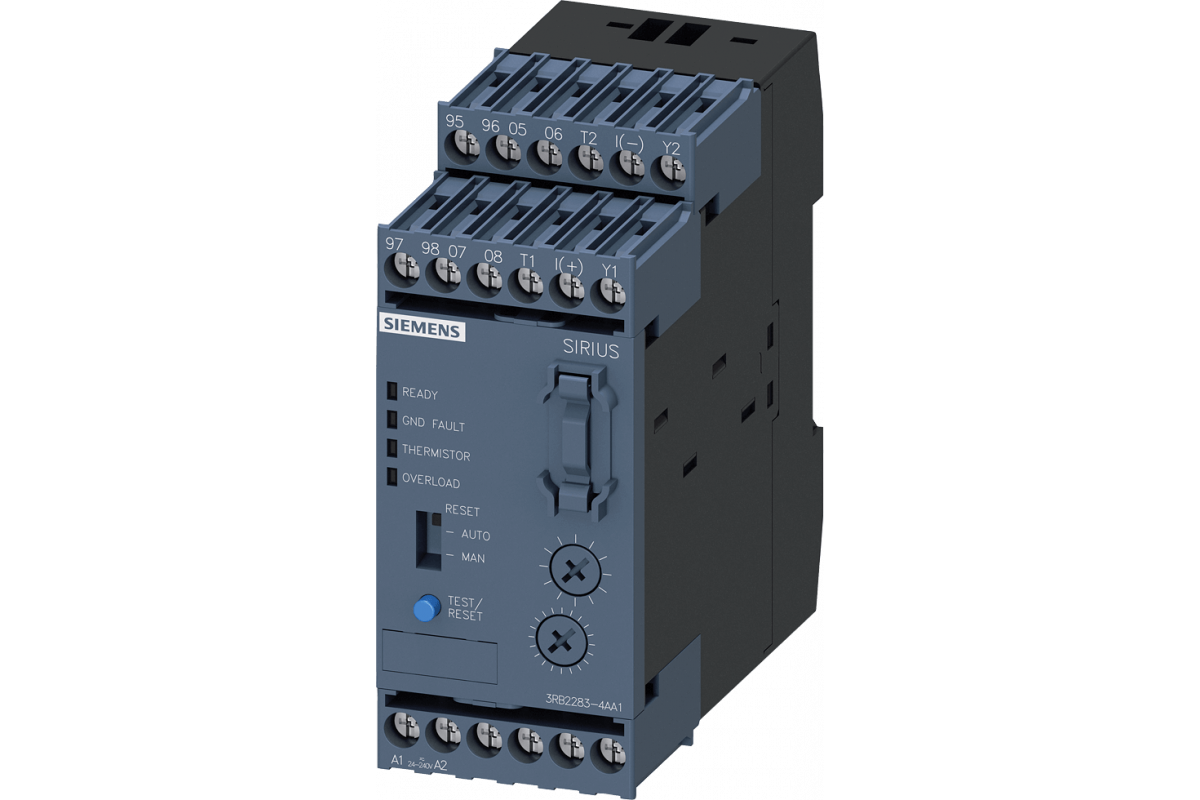 БАЗОВЫЙ МОДУЛЬ ЭЛЕКТРОННОГО РЕЛЕ ПЕРЕГРУЗКИ 3RB22/23, ТИПОРАЗМЕР S00...S12, КЛАСС 5.. .30, РАЗДЕЛЬНЫЙ МОНТАЖ, ВСПОМ. ЦЕПИ: ВИНТ. КЛЕММЫ, РУЧНОЙ-АВТОМАТИЧЕСКИЙ СБРОС