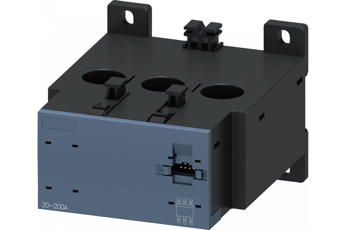 Трансформатор тока 20...200 A для 3RB22/23/24 Размер S6 Монтаж контактора/автономная установка Главная цепь: прямоходный трансформатор Вспомогательная цепь: --