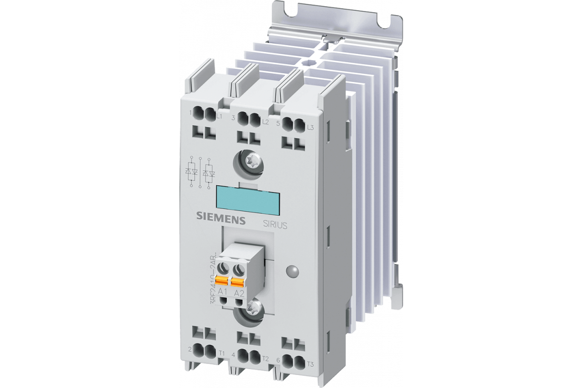 Твердотельный контактор 3-фазный 3RF2 AC 51 / 10 A / 40 °C 48-600 В / 4-30 В DC 2-фазное управление Пружинная клемма Напряжение блокировки 1200 В