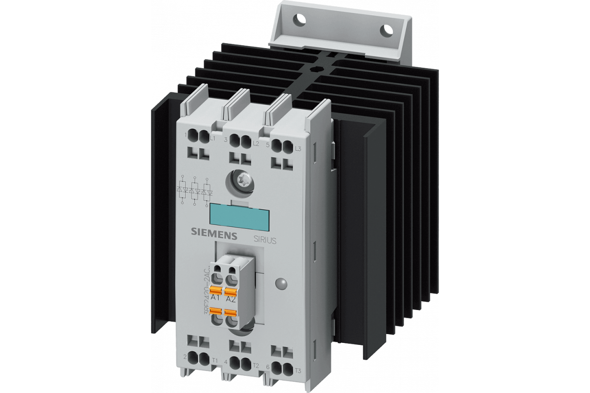 Твердотельный контактор 3-фазный 3RF2 AC 51 / 20 A / 40 °C 48-600 В / 4-30 В DC 3-фазное управление Пружинная клемма Напряжение блокировки 1200 В