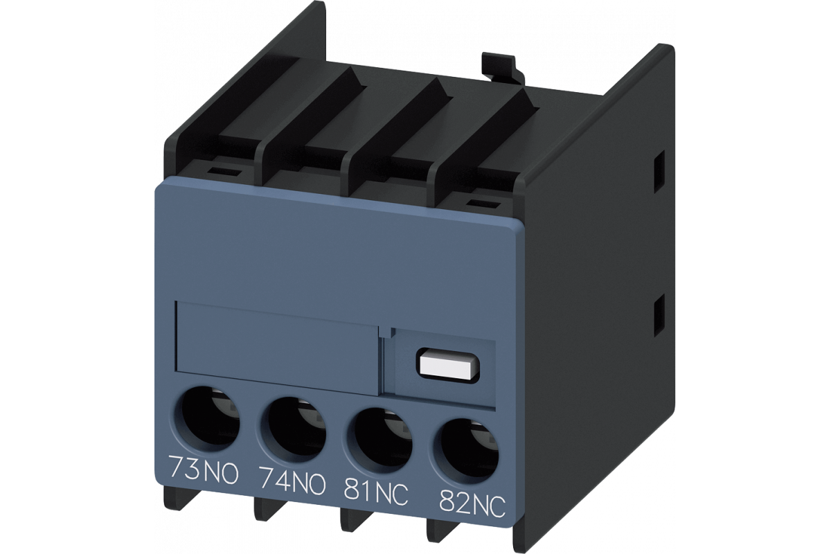 вспомогательный выключатель, на передней панели, 1 НО + 1 НЗ, 73/74, 81/82, путь тока: 1 НО, 1 НЗ, ввод кабеля снизу, винтовая клемма, для контакторов 3RT2 и контакторных реле 3RH2