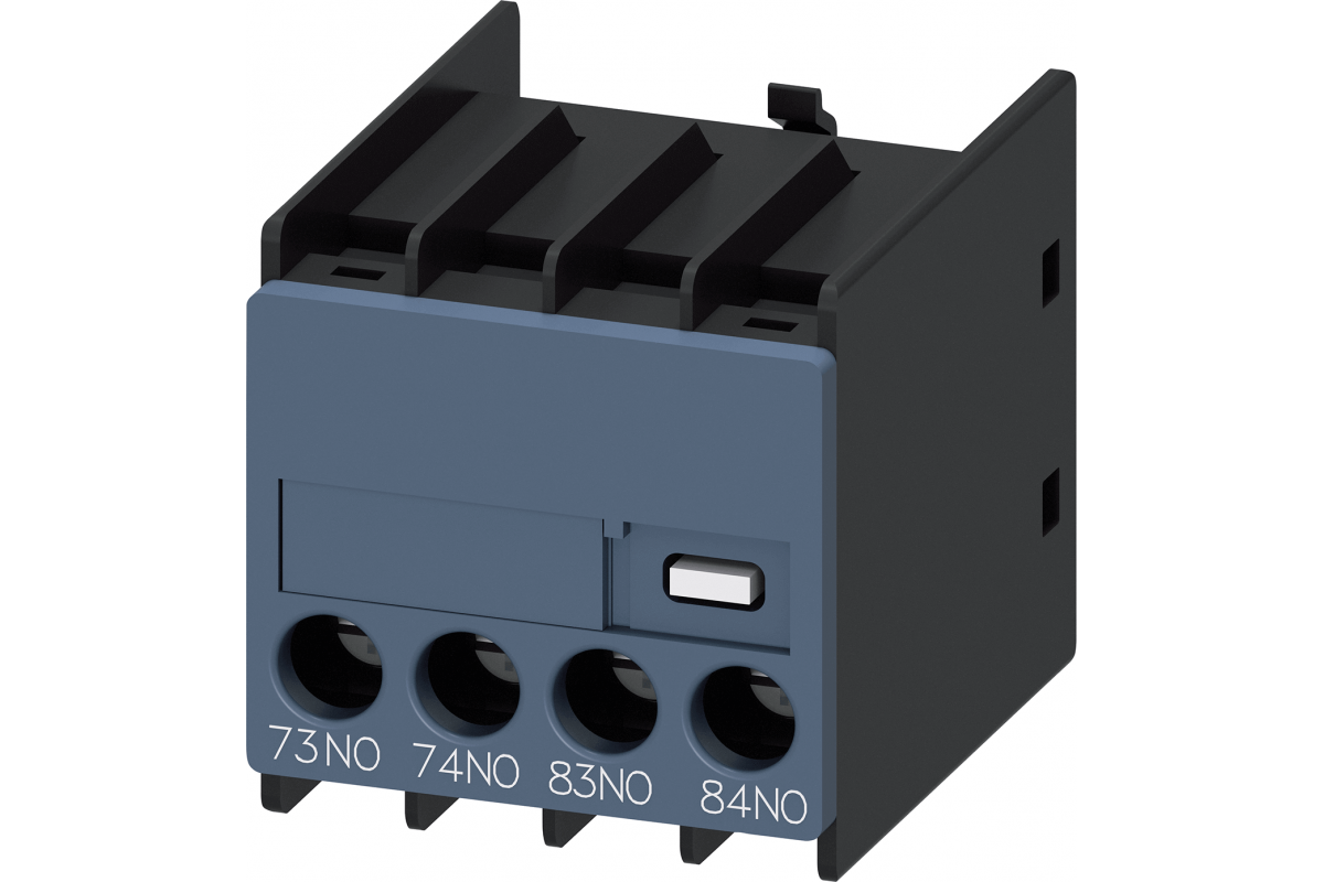 вспомогательный выключатель, на передней панели, 2 НО, 73/74, 83/84, путь тока: 1 НО, 1 НЗ, ввод кабеля снизу, винтовая клемма, для контакторов 3RT2 и контакторных реле 3RH2