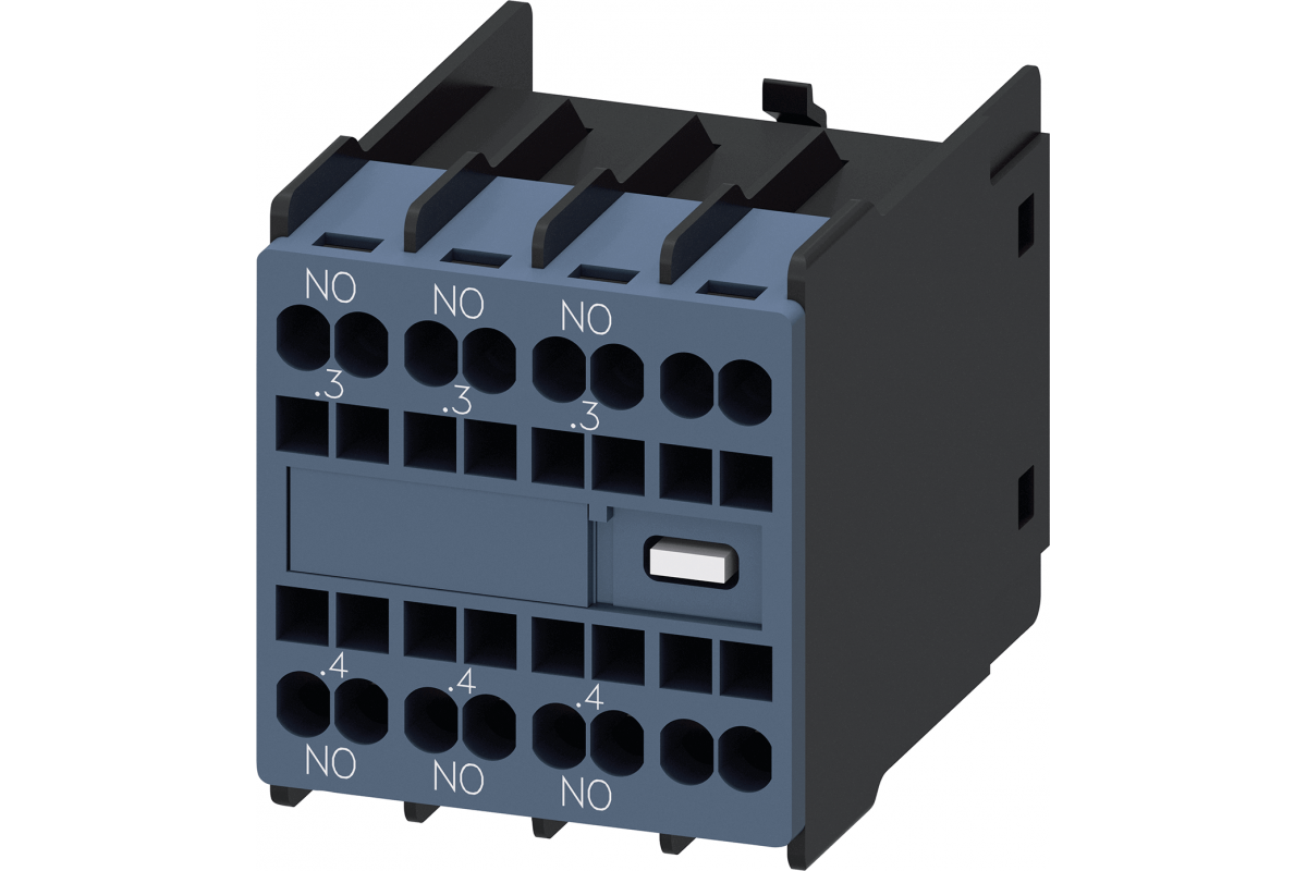 вспомогательный выключатель, на передней панели, 3 НО, .3/.4, .3/.4, .3/.4, --/--, путь тока: 1 НО, 1 НО, 1 НО, --, подпружиненная клемма, для контакторов 3RT2 и контакторных реле 3RH2