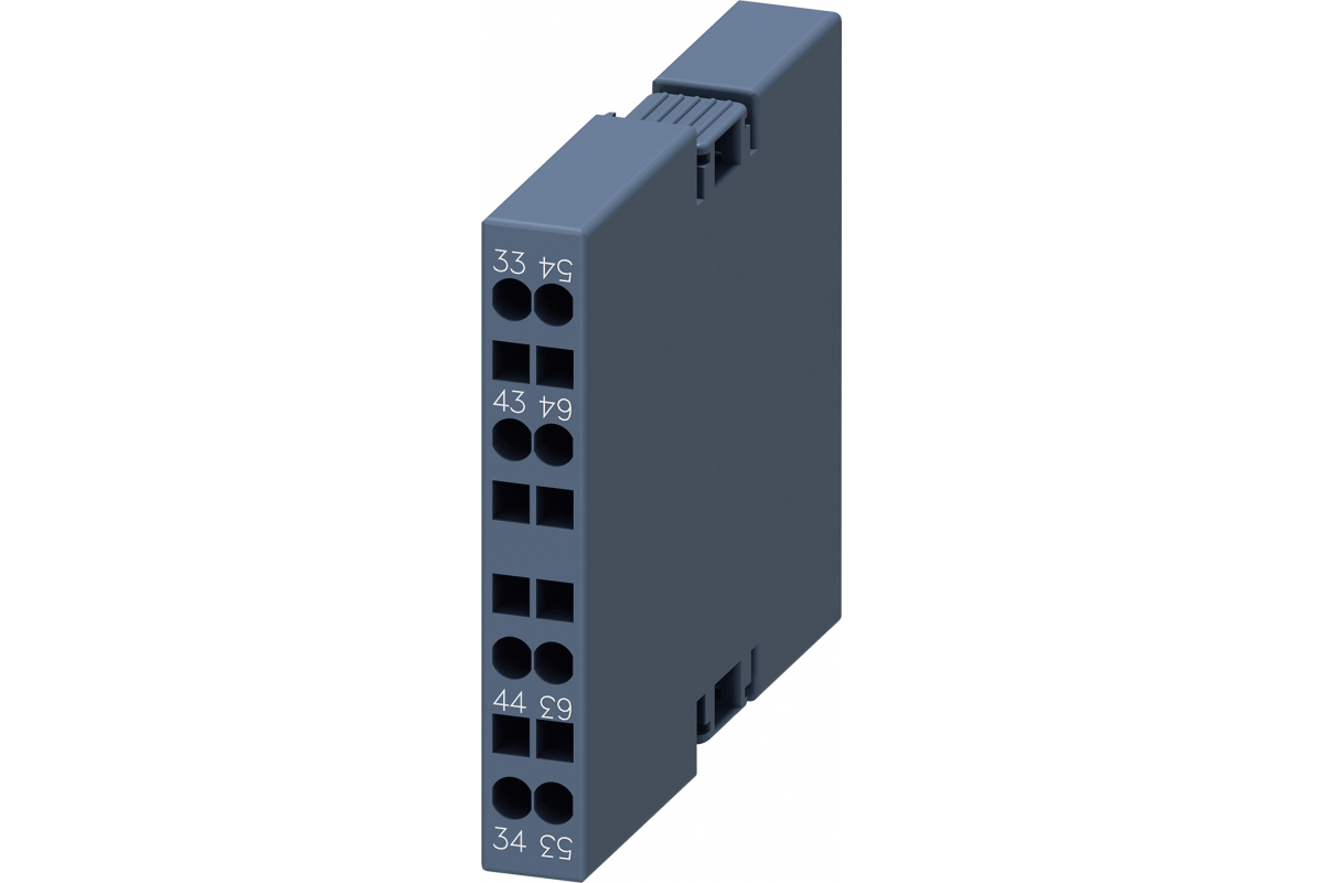 вспомогательный выключатель, боковой, 2 НО, слева: 53/54, 63/64, справа: 33/34, 43/44, путь тока: 1 НО, 1 НО, подпружиненная клемма, для контакторов 3RT2 и контакторных реле 3RH2